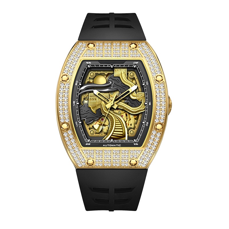 Wine barrel type men's automatic silicone strap diamond wristwatch