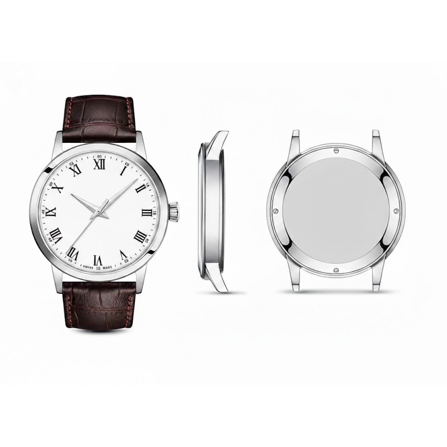Men's quartz stainless steel watch leather strap