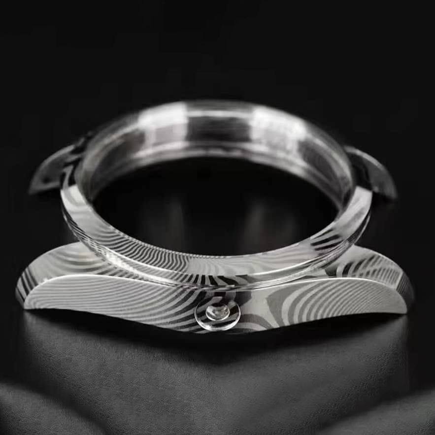 Damascus steel watch case
