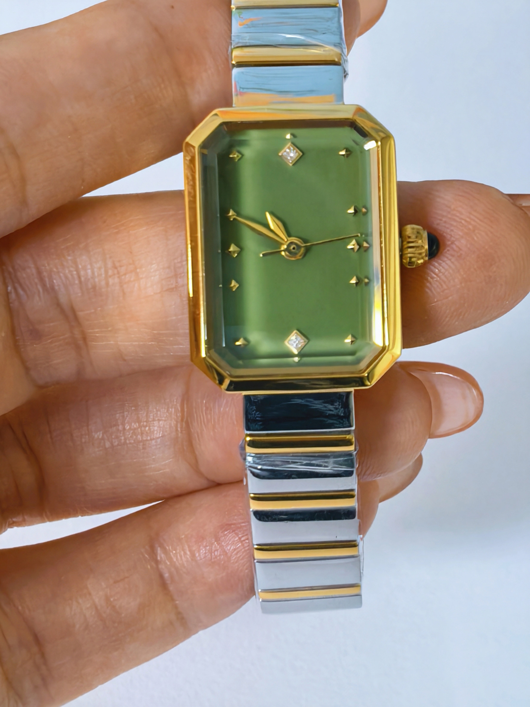 Green agate real stone women's square quartz watch