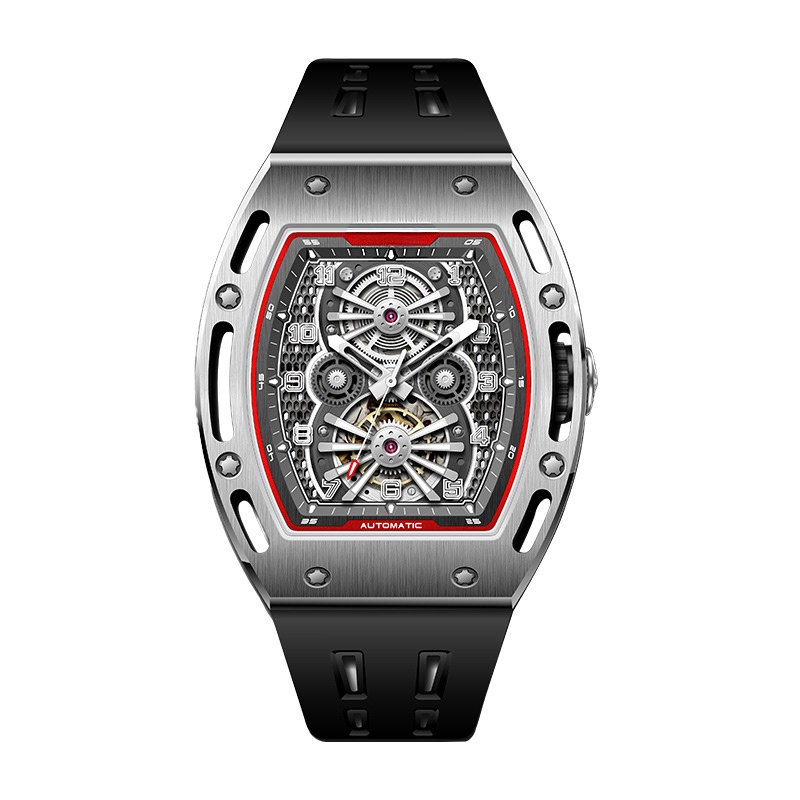 Wine barrel type men's automatic silicone strap wristwatch