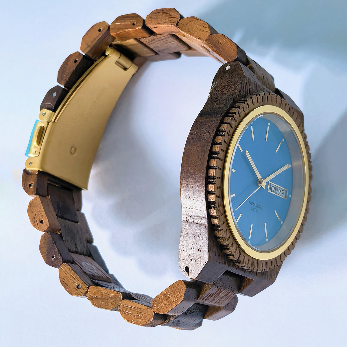 Men's quartz wooden watch