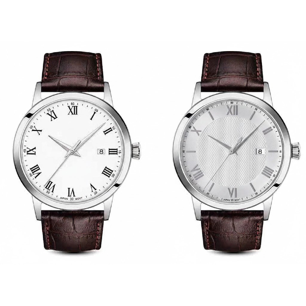 Men's quartz stainless steel watch leather strap